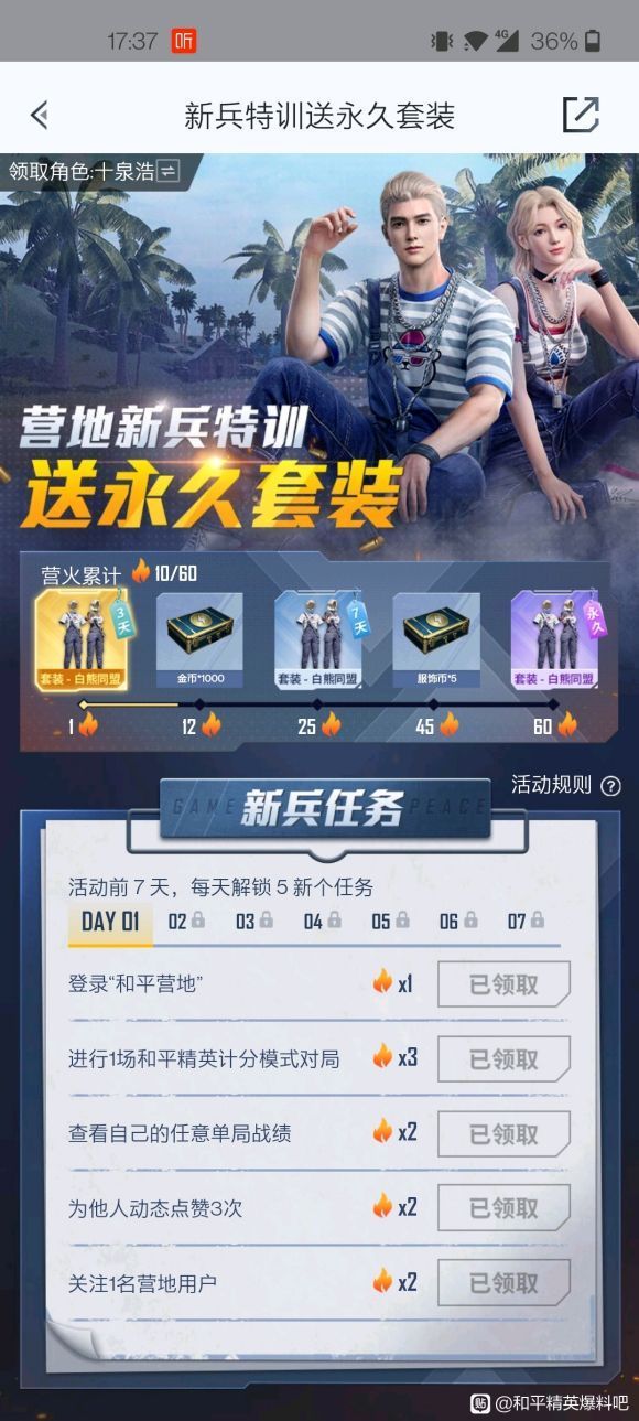 和平精英近期在苹果手机系统上线了全新的套装——白熊同盟,而这个套装一经上市就受到很多的吃鸡玩家的一致好评!很多的游戏玩家目前都迫不及待的想要知道怎么样才能够免费获取这款套装,下面58免费资源网小编就给大家详细的介绍一下,想要白嫖的小伙伴们赶紧看过来吧!和平营地测试版免费领取白熊套装攻略1.首先大家需要下载和平营地测试版;2.下载安装之后进入主界面可以看到“新兵特训送永久套装”的活动;3.完成活动要