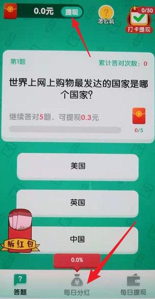 亿万答人能提现吗?最近很多小伙伴们都在玩亿万答人这个小游戏,据说是还能提现赚钱,这么好的事到底是不是真的呢?下面小编就为大家分析一下亿万答人APP赚钱详情,感兴趣的伙伴们就赶快来看看吧!亿万答人APP,答对5题可提0.3,每天答题都能提。每日分成,玩法也是看视频拿进度,有时间就赚。每天可以看20个视频,看一个视频所有红包都会有进度奖励。首提是答5道题,第二次是答25道题,秒到帐。除了每天上线答题外