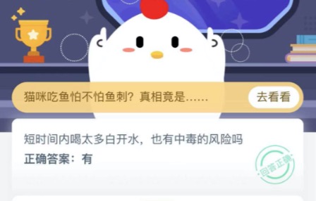短时间内喝太多白开水会中毒吗 蚂蚁庄园今日答案最新11月14日