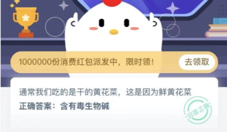 鲜黄花菜有毒吗 蚂蚁庄园今日答案最新11月13日