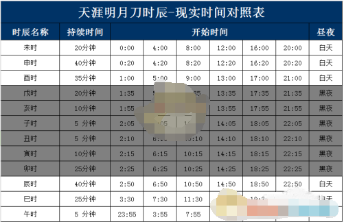 天涯明月刀游戏时辰与现实时间的对照表的具体内容是什么?