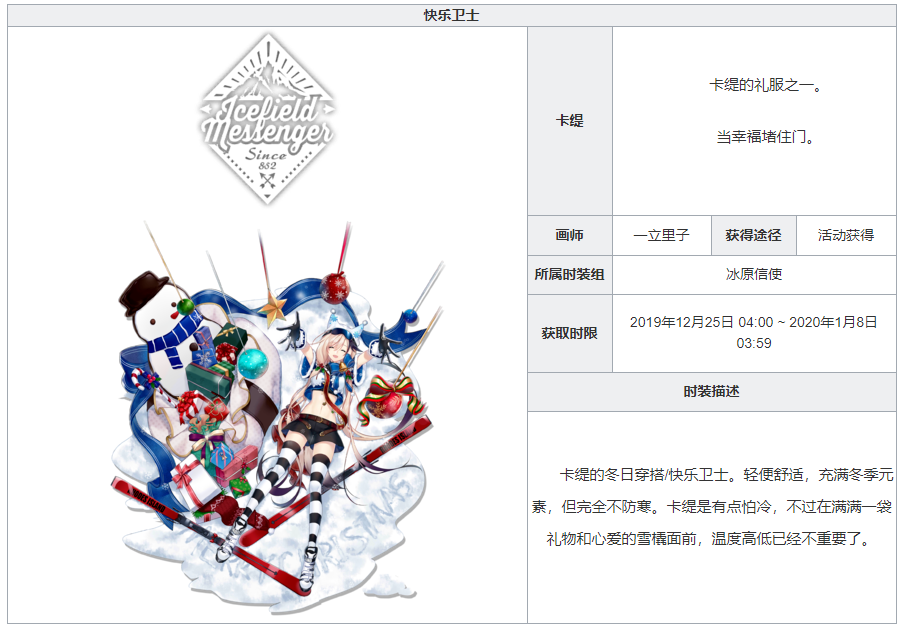 明日方舟冰原信使时装快乐卫士值得购买吗?冰原信使,盛礼迎门,不求回报!从古至今,大地上流传着一位信使的传说:他身披红衣,脚踏雪橇,穿过茫茫雪原为他人送去救命物资,很多的小伙伴们都想要知道关于明日方舟冰原信使时装快乐卫士究竟值不值得购买的问题,下面就一起来看看明日方舟冰原信使时装系列快乐卫士,希望能帮到大家!冰原信使时装系列-快乐卫士明日方舟相关推荐:明日方舟稀音干员怎么样?稀音干员介绍明日方舟冰原