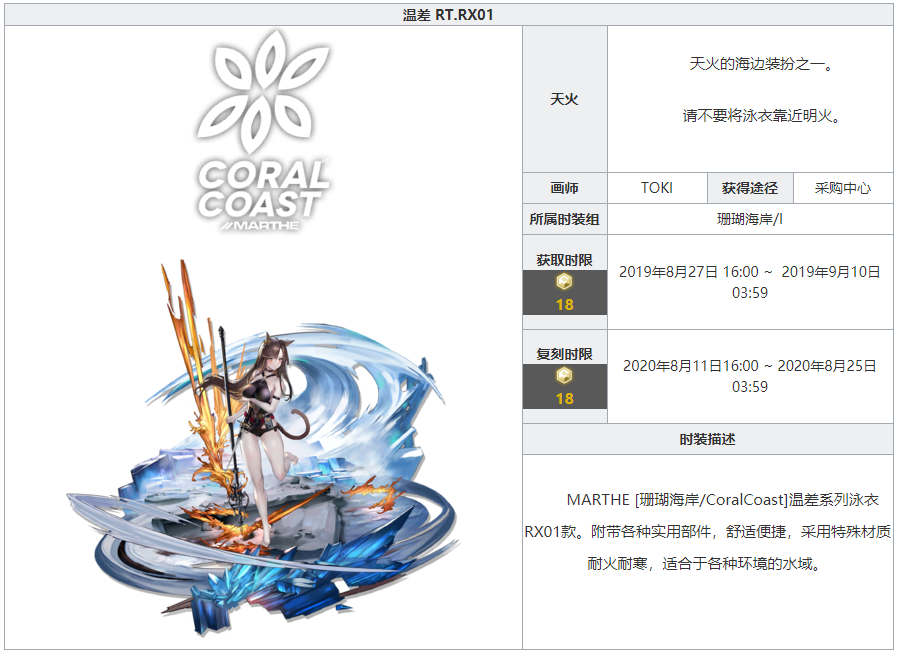 明日方舟珊瑚海岸时装温差怎么样?明日方舟珊瑚海岸时装温差继承自玛尔特的精神理念,着重游戏玩家的需求与最前沿设计,每年都以最靓丽色彩点缀您的海岸,明日方舟玩的玩家还是很多,在不同的平台上都看到玩家们活跃的身影,下面就一起来看看明日方舟珊瑚海岸时装系列温差,希望能帮到大家快速的了解这款游戏皮肤!珊瑚海岸时装系列-温差明日方舟相关推荐:明日方舟冰原信使时装厚礼怎么样?冰原信使时装厚礼一览明日方舟杜宾少尉