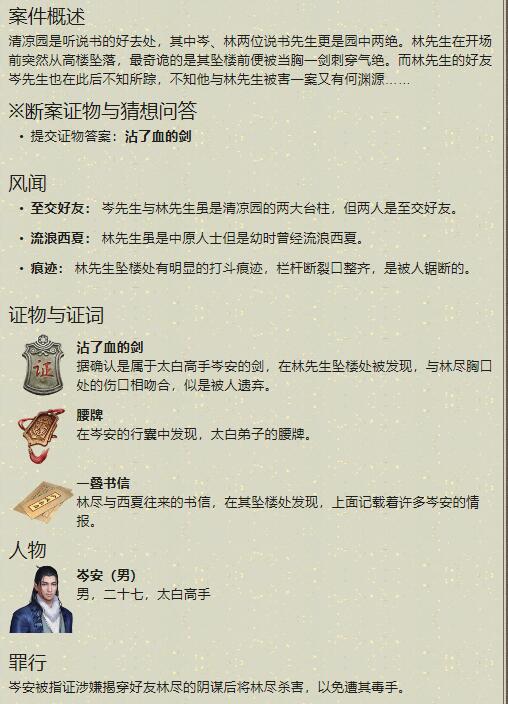 天涯明月刀岑安案怎么破案?岑安案案件证据