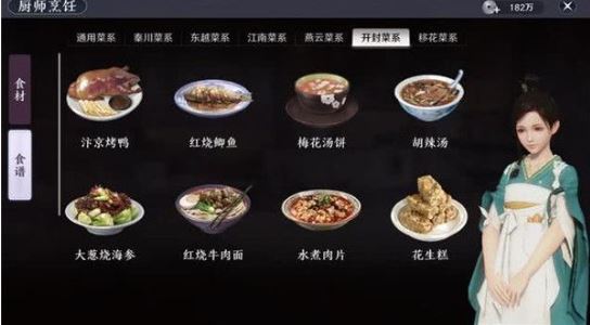 天涯明月刀开封菜系食谱都有什么?