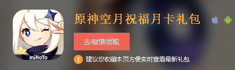 原神空月祝福月卡礼包怎么领取?原神手游礼包又与大家见面了,月卡是原神这款游戏中一个非常实惠的氪金手段,月卡每天90个原石,购买的时候立刻送300原石,合计1个月3000原石,兑换比例1000%。如果你是打算长期玩,并有氪金打算的话,那月卡是不容错过的,原神手游空月祝福月卡礼包怎么领取呢,让我们一起看看原神手游空月祝福月卡礼包,希望能帮到大家!礼包名称:原神手游空月祝福月卡礼包有效时间:2020.0
