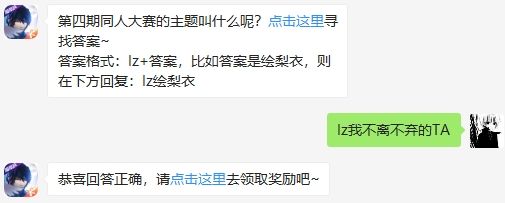 第四期同人大赛的主题叫什么呢?龙族幻想2020年8月20日每日一题答案:这是龙族幻想手游2020年8月20日微信每日一题的问题,回答正确可以获得天天抽好礼的机会,大家知道今天每日一题的答案吗?下面小编为大家带来了龙族幻想8月20日微信每日一题答案,一起来看看吧!2020年龙族幻想8月20日每日一题问题第四期同人大赛的主题叫什么呢?点击这里寻找答案~答案格式:lz+答案,比如答案是绘梨衣,则在下方回