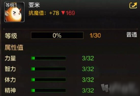 DNF手游亚米属性怎么样?DNF手游亚米属性怎么样呢?很多小伙伴不清楚DNF手游亚米属性怎么样,下面就跟小编一起来看一看吧!一、亚米属性介绍级别:普通抗魔值:78【属性值】力量:3/32智力:3/32体力:3/32精神:3/32【技能】吞灵者:攻击时,有10%的几率减少敌人5%的魔力值。二、获得途径1、玩家们可以通过购买萌宠币来获得抽奖机会,有概率抽取到宠物。2、或者在宠物商店(萌宠兑换)中通过萌