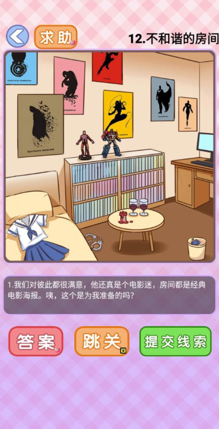 你有问题第12关怎么通关?你有问题这款游戏的趣味性还是比较高的,可以让各位有对象的小伙伴们分辨出自己的男女关系,你有问题第12关怎么通关?我们一起来看看做你有问题第12关通关攻略。指路→《你有问题》全关卡通关攻略大全你有问题第12关怎么过题目:我们对彼此都很满意,他还真是个电影迷,房间都是经典电影海报。咦,这个是为我准备的吗?正确操作:依次点击提交小圆桌上的酒杯、床上的衣服、地上的手铐、垃圾桶!