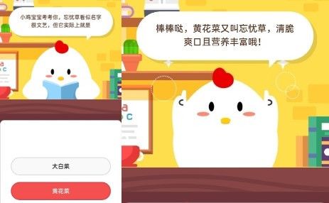 小鸡宝宝考考你,忘忧草看似名字很文艺,但它实际上就是?这个是蚂蚁庄园2020年4月23日庄园小课堂的问题,大家知道正确答案吗?答对这个问题可以获得180g饲料,答错则只有30g饲料。2020年4月23日蚂蚁庄园小课堂问题小鸡宝宝考考你,忘忧草看似名字很文艺,但它实际上就是?大白菜黄花菜2020年4月23日蚂蚁庄园小课堂答案黄花菜以上就是小编为大家带来的2020年4月23日支付宝蚂蚁庄园小课堂的答案