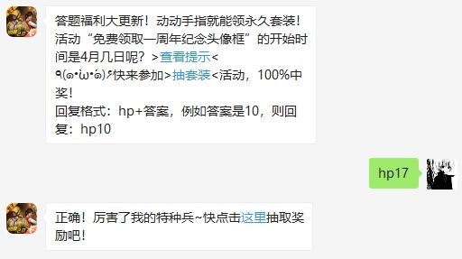 活动“免费领取一周年纪念头像框”的开始时间是4月几日呢?和平精英4月23日答题抽奖答案