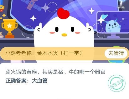 涮火锅的黄喉,其实是猪、牛的哪一个器官?2020年4月26日蚂蚁庄园小课堂答案