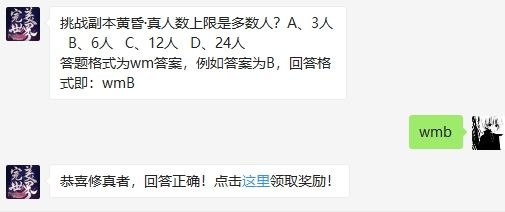 挑战副本黄昏·真人数上限是多数人?完美世界手游4月17日微信每日一题答案