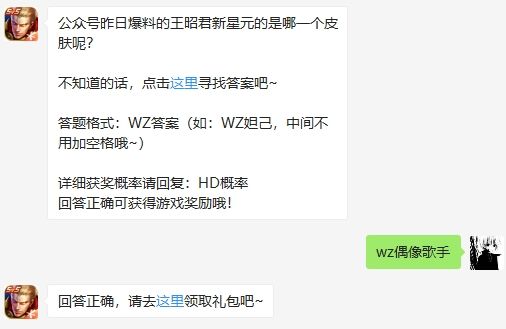 公众号昨日爆料的王昭君新星元的是哪一个皮肤呢?王者荣耀4月17日微信每日一题答案