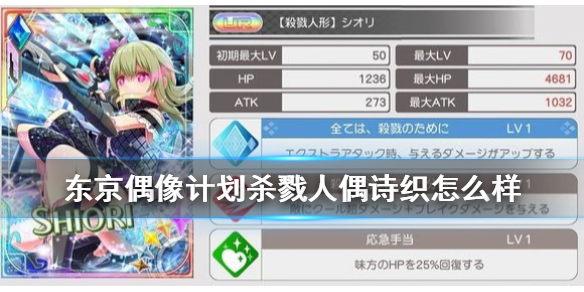 东京偶像计划杀戮人偶诗织怎么样?杀戮人偶诗织是东京偶像计划初始UR系列中的一张卡牌,那么作为A队队长的诗织在这个系列中强度如何呢?想必很多的小伙伴并不是很清楚吧,接下来小编将为大家详细的介绍一下关于这款游戏角色,喜欢的小伙伴们千万不要错过了喔!杀戮人偶诗织怎么样一、卡牌介绍最大HP:4681最大ATK:1032被动:在每次攻击之时,增加你连击造成的伤害,即增加追击(额外)伤害。主动1:通用技能,造
