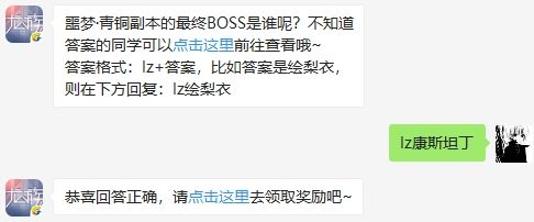 噩梦·青铜副本的最终BOSS是谁呢?龙族幻想1月9日每日一题答案