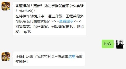 在特种作战模式中,通过升级,工程兵最多可以架设几面盾牌呢? 和平精英1月9日答题抽奖答案