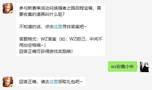 参与新赛季活动兑换强者之路启程宝箱,需要收集的道具叫什么呢?王者荣耀1月9日微信每日一题答案