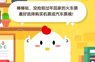 小鸡宝宝考考你小明没有抢到过年回家的火车票他最好选择是什么? 1月9日蚂蚁庄园小课堂答案