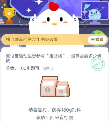 支付宝运动里想参与“走路线”,最低需要多少步数?蚂蚁庄园小课堂1月9日答案