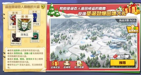 如何在一拳超人手游中玩圣诞活动?一拳超人手游目前风靡网络,新颖独特的玩法,深受网友们的追捧!圣诞节马上就到了,一拳超人手游也推出了圣诞节活动。那么你知道一拳超人手游中圣诞活动该怎么玩吗?快来跟着小编一起来看看吧。1:追捕大盗这个活动是与铃铛挂钩,铃铛获取大部分都在这里,对应就是最直接的铃铛商店每天可以搜寻十次大盗。搜寻大盗对应的是游戏里面追捕榜,奖励也是最好的。但是大盗除了你刷图出的十个以外,打圣
