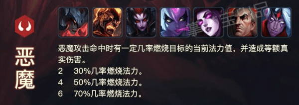 LOL云顶之弈恶魔流阵容怎么搭配?还不知道怎么搭配的玩家们,下面58免费资源网小编就为大家带来恶魔流阵容搭配推荐,接着往下看吧。 恶魔流阵容搭配推荐羁绊加成:2个-恶魔的攻击有几率灼烧一名敌人的所有法力值并