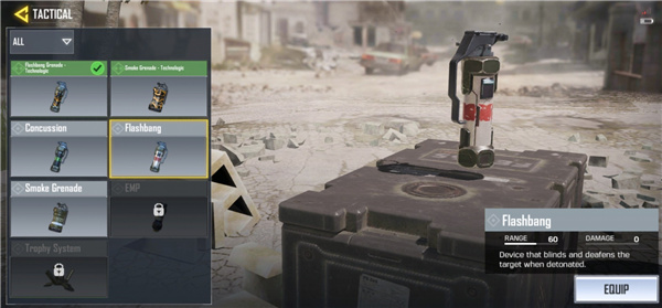 使命召唤手游作为一款战争题材的射击游戏,投掷物是游戏中最基础的功能性道具,其中闪光弹大家最熟悉的投掷物,但是在使命召唤中闪光弹还有一些特殊的作用,下面58资源网小编就为大家介绍一下吧。 装备介绍 投掷型战术装备,投掷时砸到敌人可造成15伤害,投出后自动