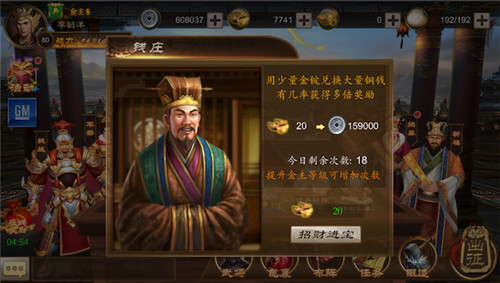 俗话说有钱能使鬼推磨,在诸侯三国游戏中如果没有可观的经济实力,可没有武将会跟着你一起挨饿。铜钱在游戏中是前期非常重要的货币,那么今天小编就教大家如何在前期快速有效的赚取金币。 1.招财进宝:玩家可以从钱庄老板处用少量的金锭兑换大量的铜钱,并且有几率获得多