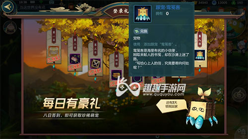 剑网3指尖江湖鸾笺客这个宠物如何才可以得到呢?许多玩家不知道在哪才可以拥有这个螃蟹跟宠,小编这就为大家介绍一下获取的方法吧。 鸾笺客: 这个小螃蟹宠物,是需要玩家通过签到八天才可以得到哦。玩家可以在 玩家可以在福利-活动的登录礼包中看到,通过八天签到