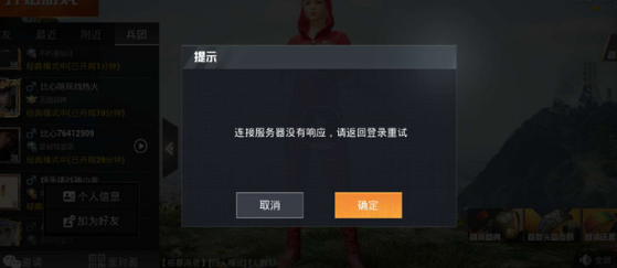 【58资源攻略】和平精英连接服务器没有响应怎么办?有很多小伙伴们都不知道,那么下面就由58资源小编来为大家带来连接服务器没有响应解决方法吧,希望能够帮助到大家。连接服务器没有响应解决方法提示1:连接服务器没有响应,请返回登录重试提示2:无法连接到服务器,请尝试