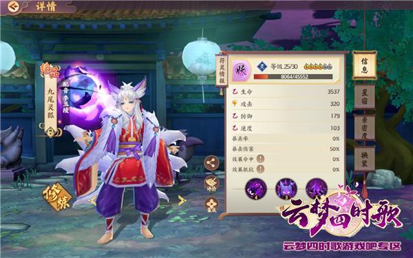 云梦四时歌中,螭吻是一个偏向辅助控制向的输出符灵,有一定的输出,但是控制能力也很不错,很多玩家都想知道螭吻带什么星宿比较好,下面58免费资源网小编为大家带来介绍。 云梦四时歌螭吻星宿带什么箕水豹×4(速度+25%)+鬼金羊(效果命中+20%)位置推荐:二号位速