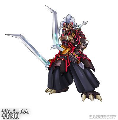 在战斗不断增强自身力量,身为战斗种族数码兽非常优秀的暴龙兽系亚种的龙人型数码兽。其力量很大程度还是个未知数,拥有着难以置信的战斗次数和战绩。 通过实战经验得到呈独特形状的剑「菊燐」残留着奇异的光之轨迹,被这道轨迹触到的东西全都会被斩开。必杀技是「菊燐」剑