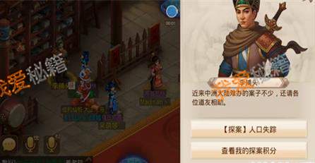 《问道》手游每周都会更新探案任务,有一些探案任务可能名称是和之前相同的,不过任务做法是有所不同的,本周的探案任务是——人口失踪案,下面58免费资源小编给大家分享一下攻略。问道手游人口失踪案攻略1.官府李捕头接任务。2.天墉城钱大富3.五龙山找钱袋,然后打开4.