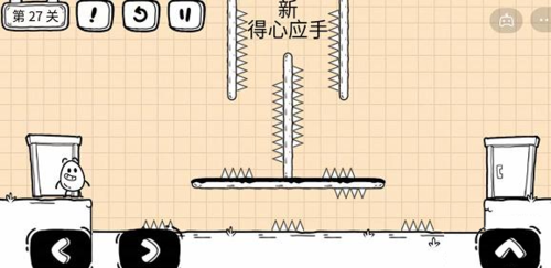 我们来到了茶叶蛋大冒险镜中世界的第27关,大家乍一看这一关非常的考验操作难度,很多玩家都卡在了这一关,那么茶叶蛋大冒险镜中世界第27关具体要怎么过呢?让小编来告诉大家吧。茶叶蛋大冒险镜中世界第27关怎么过1、第27关的问题是:新得心应手。2、这个关卡我们可以知道是没办法从这里走过去通关的,这时候我们就要去将茶叶蛋点击向上拖动。3、讲茶叶蛋拖到高空没有尖刺的位置然后松开下落就可以了。4、在画面都最右