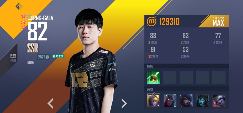GALA的补刀在英雄联盟当中非常出众,在英雄联盟电竞经理这款游戏当中,也是突出了这位选手的补刀特色,那么我们在培养GALA的时候,是往哪个方向走呢?让小编来告诉大家吧。英雄联盟电竞经理GALA好用吗1.概况【SSR】2022春 RNG-GALA【补刀之王】司职位置:下路基础评分:822.英雄招牌:伊泽瑞尔熟练:韦鲁斯丨厄斐琉斯丨卡莉斯塔丨崔丝塔娜3.技能【发育高手】:全场比赛中,每当选手击败1个敌